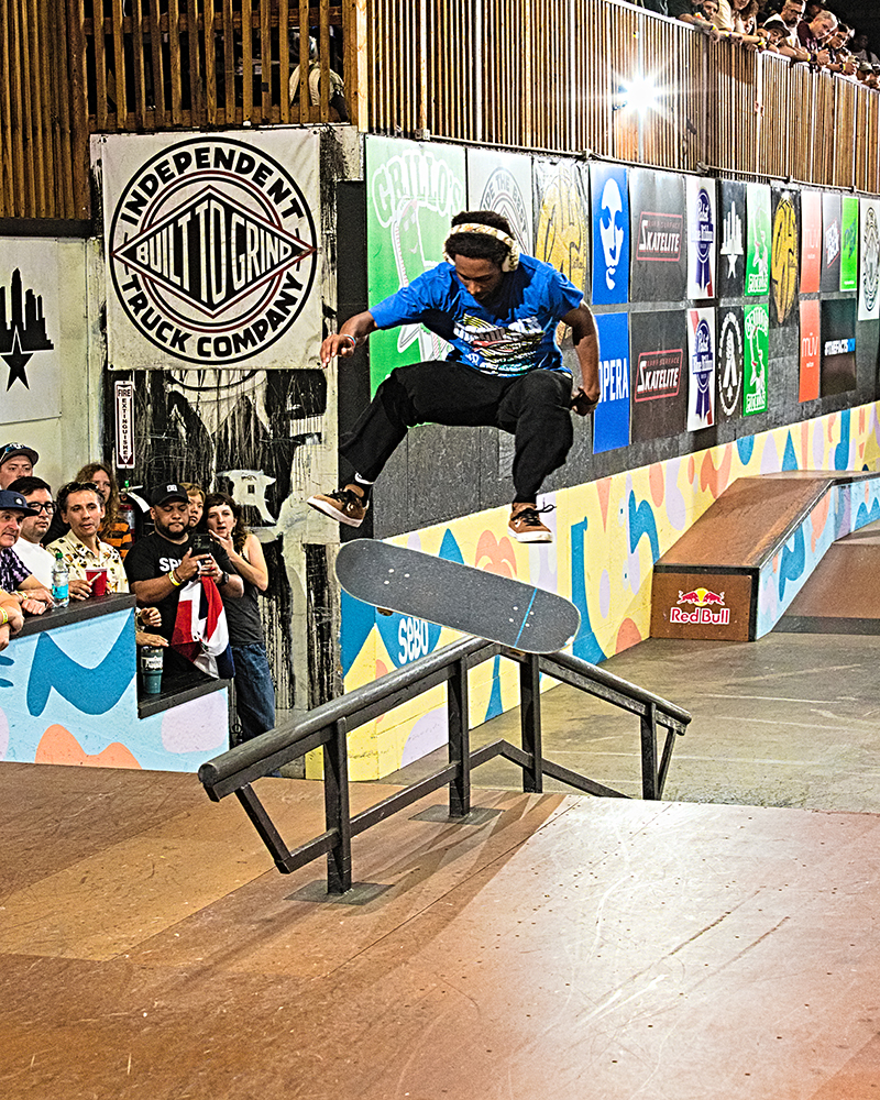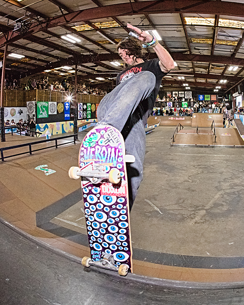 Listening to Kelvin Hoeffler provide details about his foot placement and to Matias Dell Olio, feels like overhearing top secret details on how to assassinate a skateboard. Hearing Sebo Walker answer Micky Papa on how a combination of sleep deprivation, caffeine, and stoke were the reasons for his absolute shredding of the park got everyone laughing. Sebo had been at the park days prior painting after hours. He absolutely smashed this year’s course paint job. The colors and style displayed a SPoT theme that only someone with as long of a history with the park as Sebo could express. With the killer paint job, the pros in the park, and the crowds arriving, you just get a sense something big is on the way.