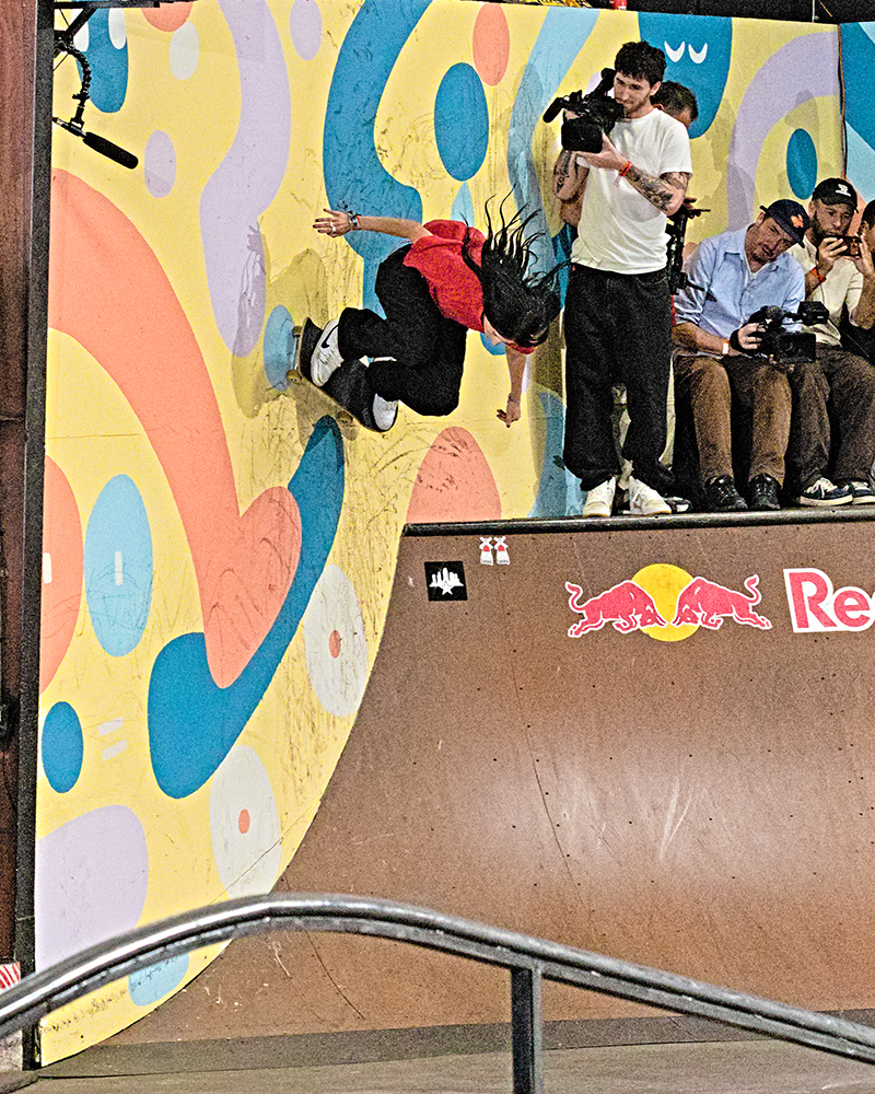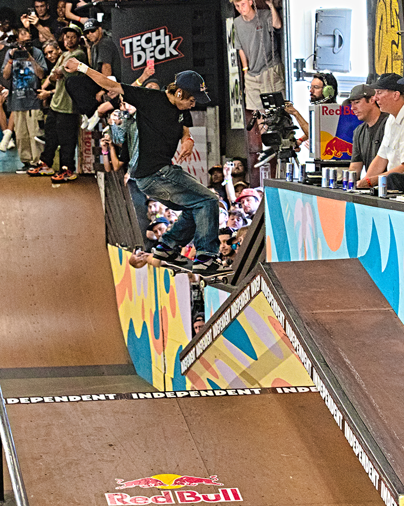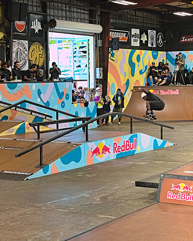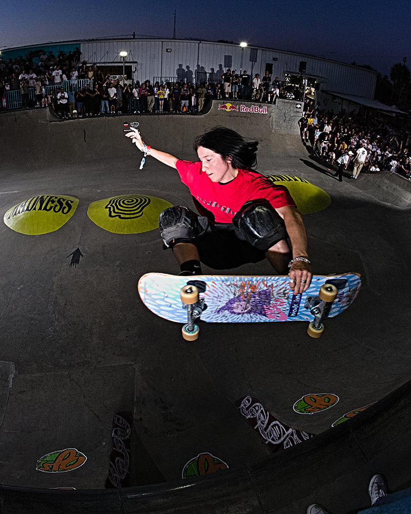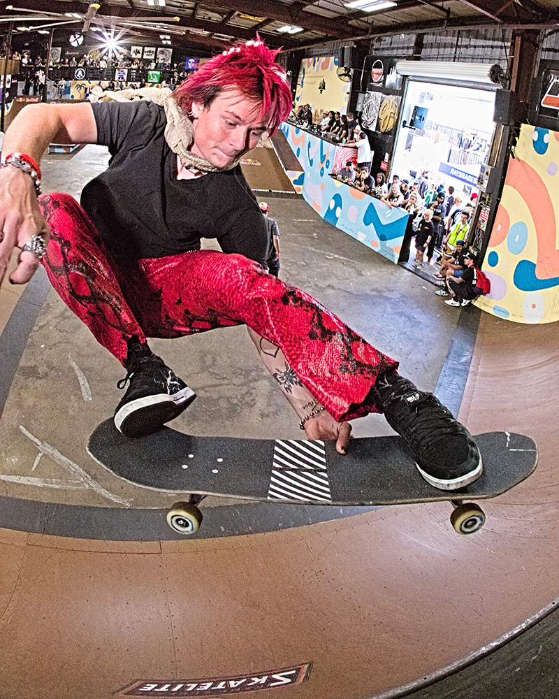 After working a few Tampa events, I have found that practice is the best time for getting gnarly fisheye shots and chatting with the skaters. You can be a bit more intrusive with the camera and the vibe feels like any heavy skate session. People are talking smack, having fun, and hyping each other up. The conversations on the decks of the ramps are both typical of any skatepark and extraordinary because of the individuals having them.