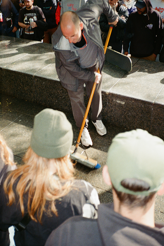 Thankfully, both the Sun and the crew were moving diligently in the drying efforts. That includes Big Sexy, a handsome chunk of talented skateboarder and a pillar of the Dime community; He’s not afraid to get his hands dirty, either.